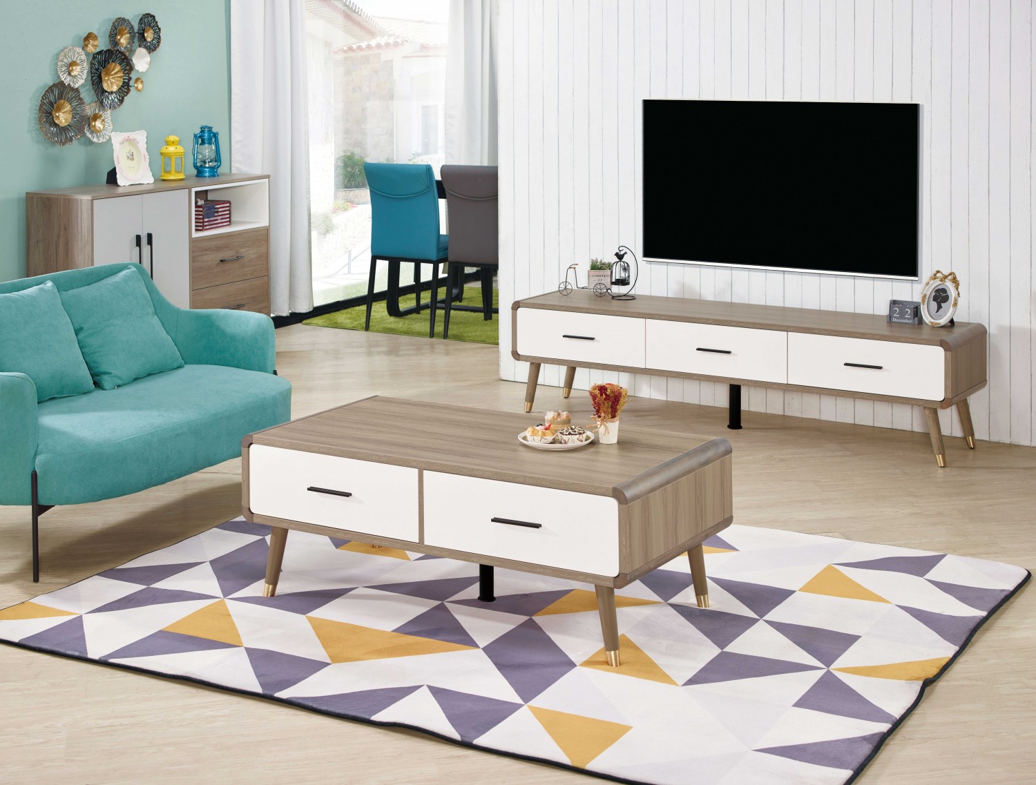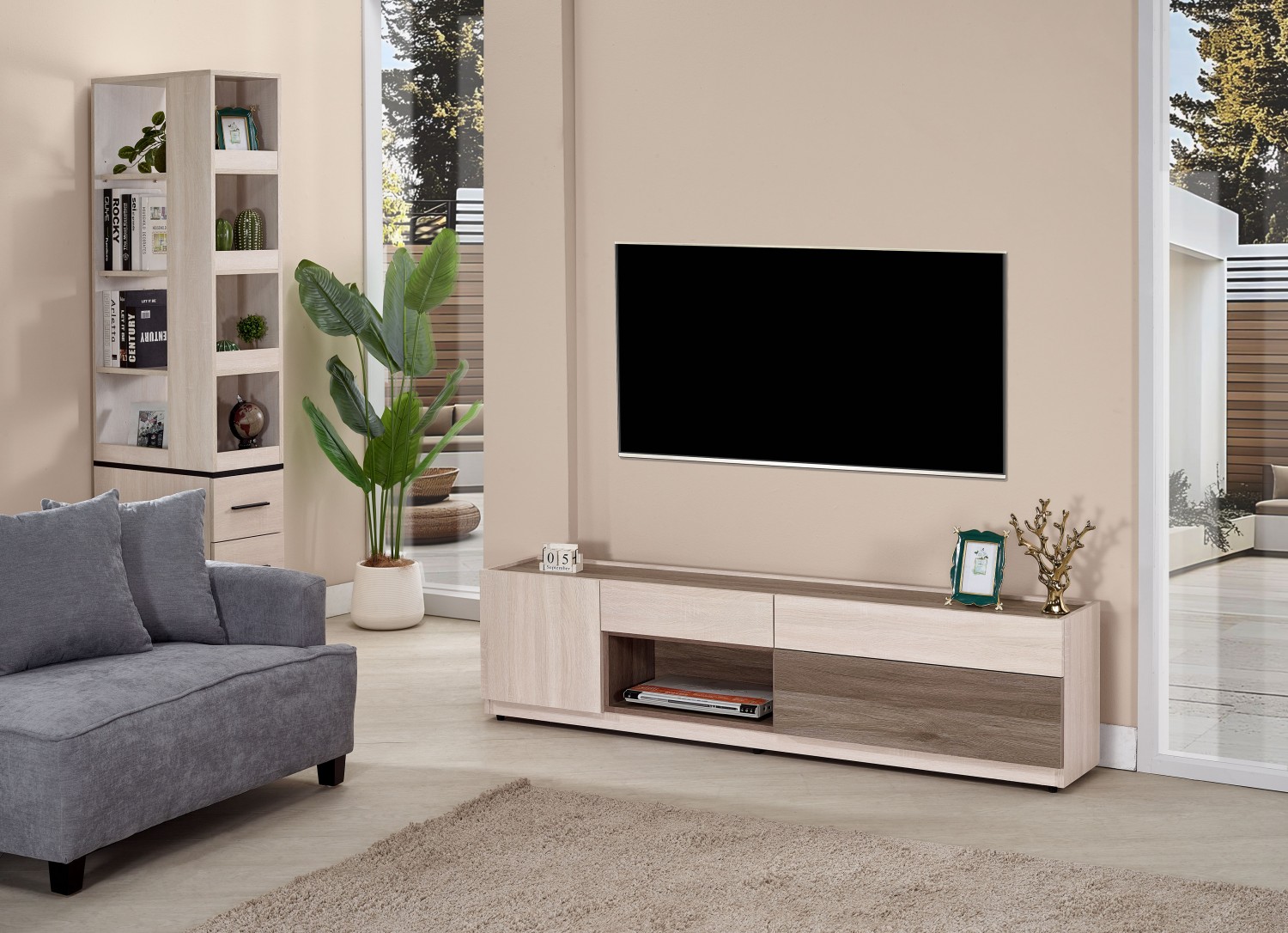 JC-624-3 艾諾6尺淺灰橡色三抽電視櫃