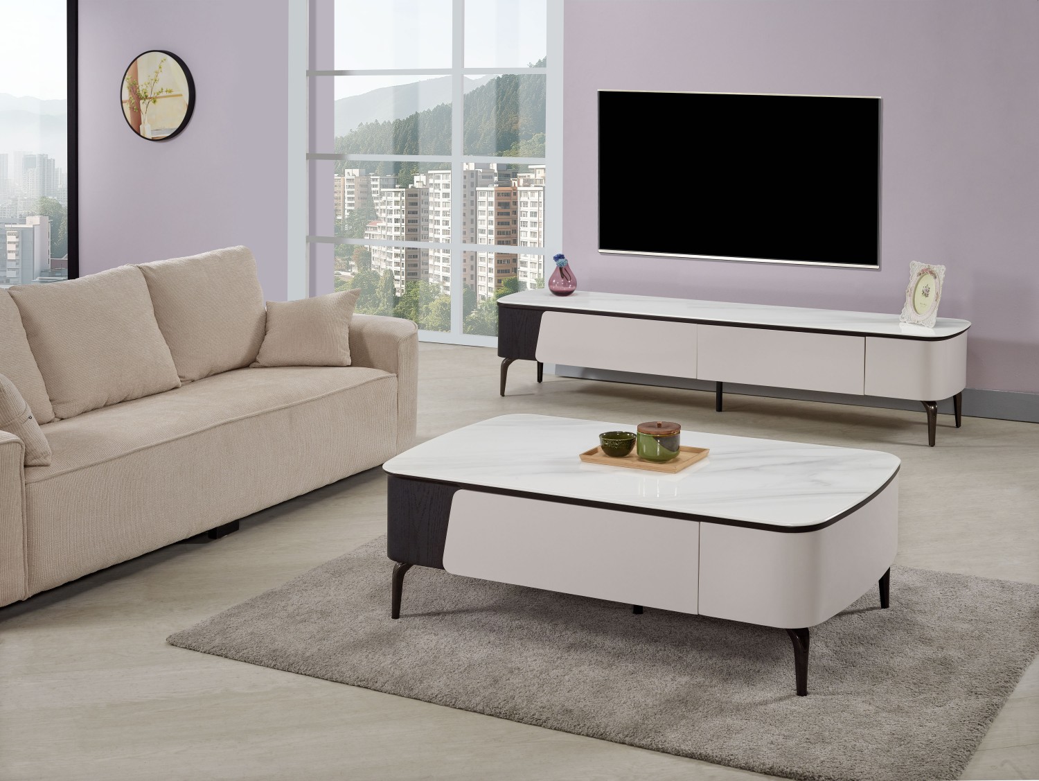 JC-621-3 優悅6尺二抽二門雪山岩板電視櫃
