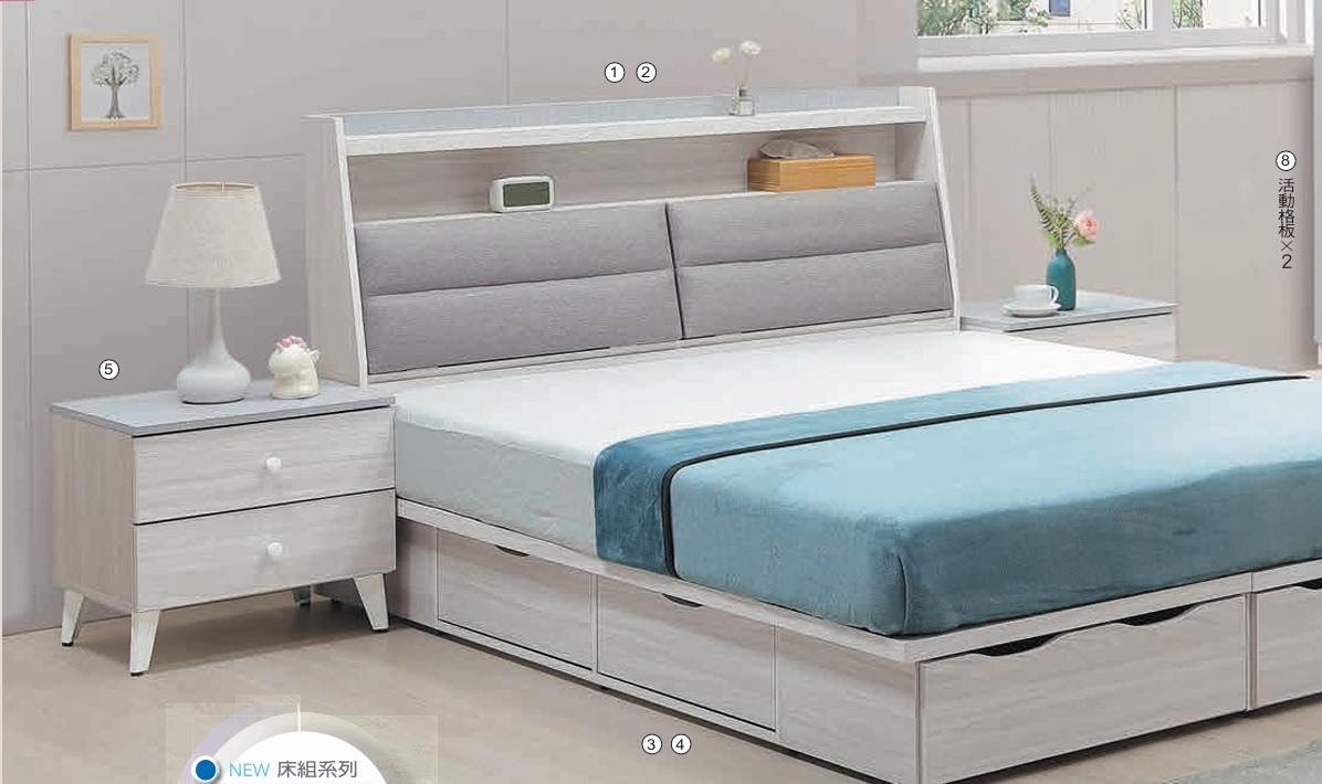CL-539-13 夏禾面紙盒5尺床箱+USB+(雙邊四抽)床底