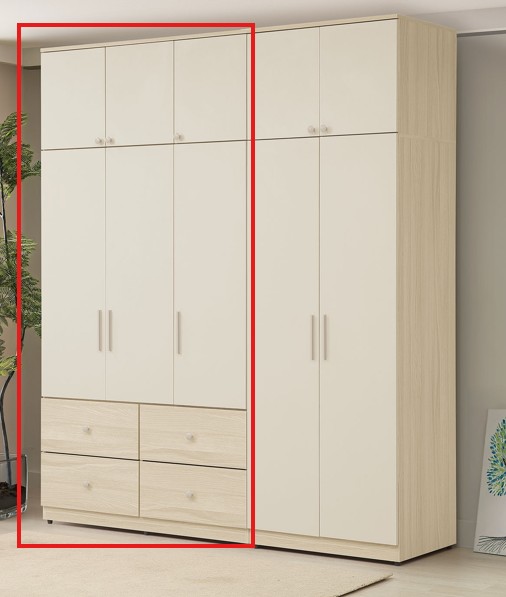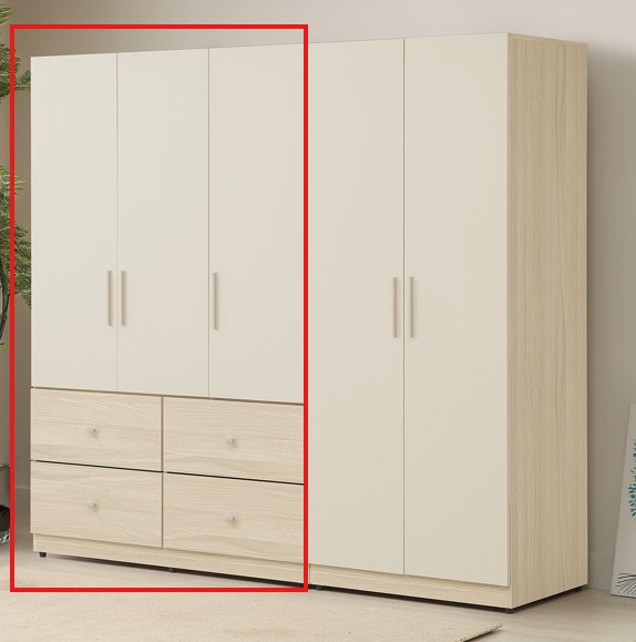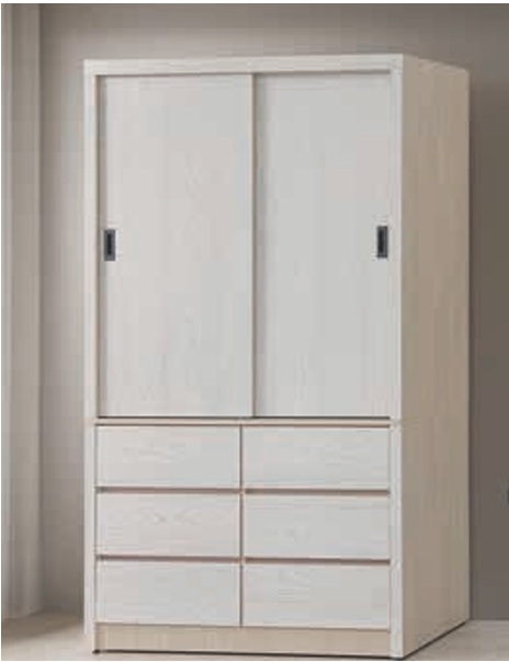 JC-334-4 卡亞白梧桐色4尺六抽推門衣櫃