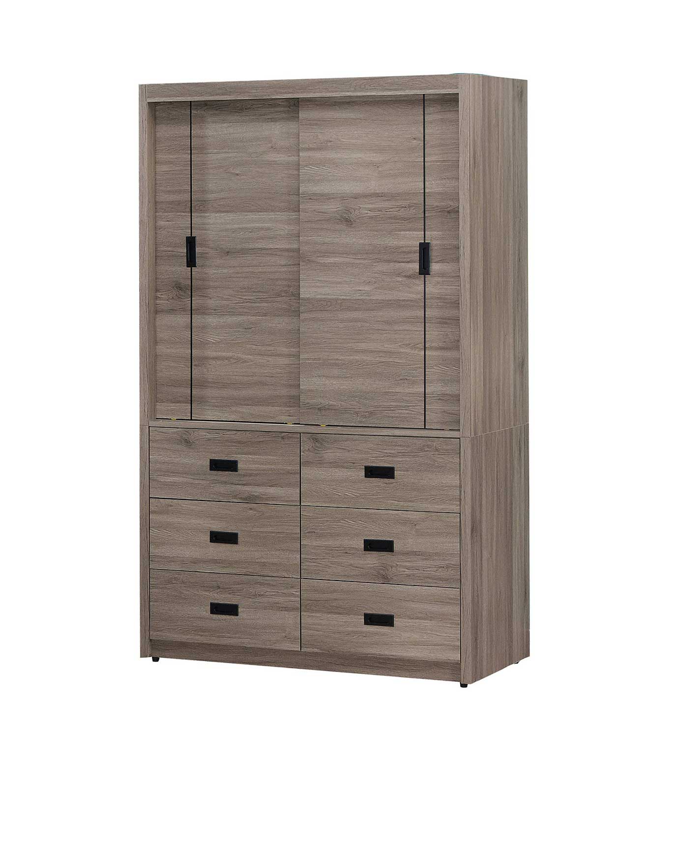 JC-336-8 拉比灰橡4尺六抽推門衣櫃