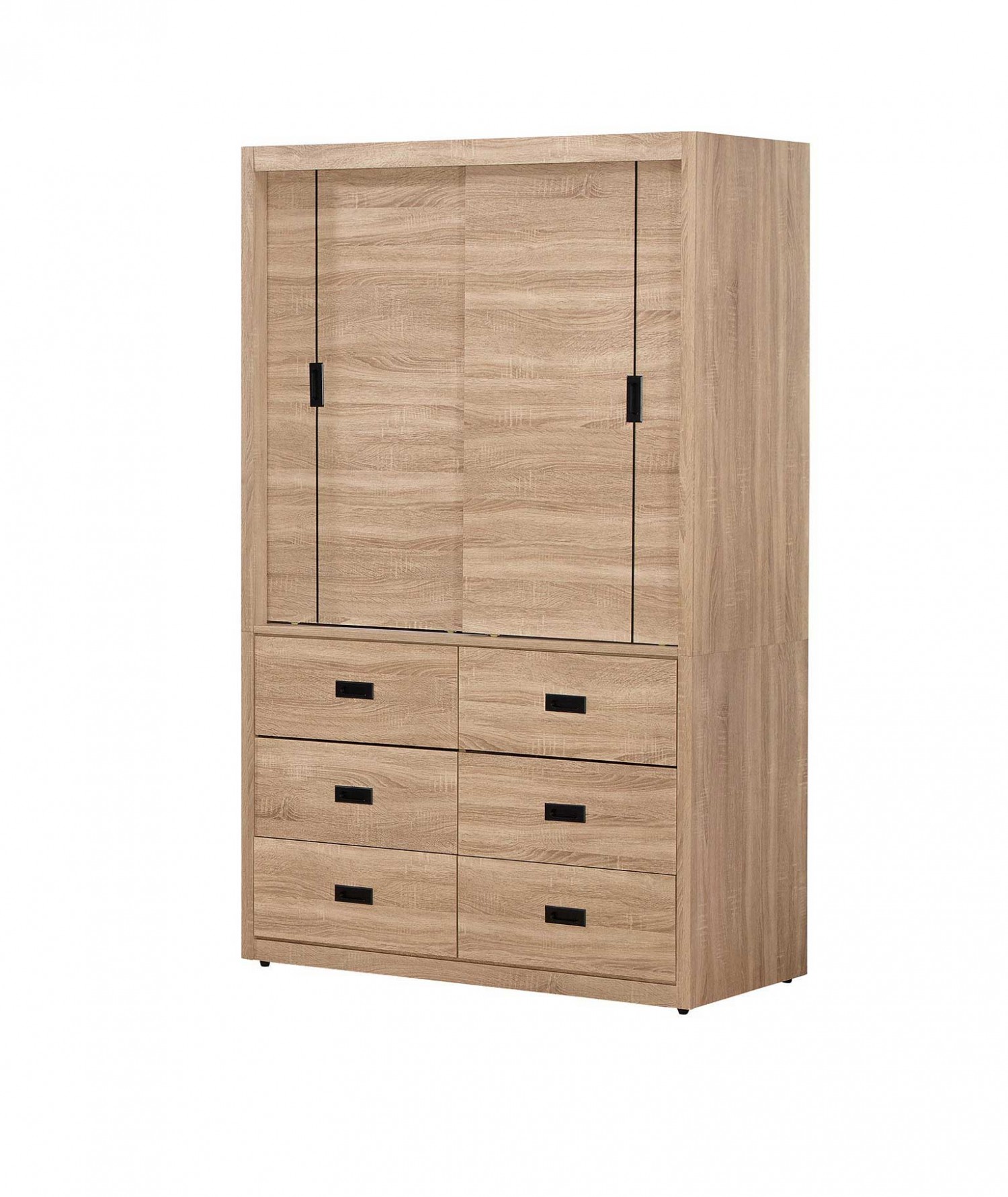 JC-364-8 法諾梧桐色4尺六抽推門衣櫃