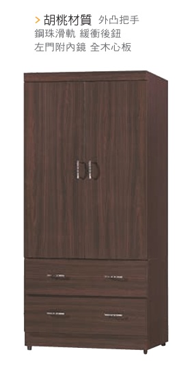 CL-628-1 胡桃3X6尺衣櫥 (不含其他產品)
