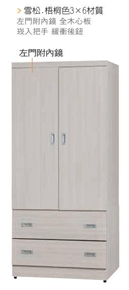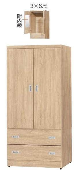 CL-628-2 梧桐色3X6尺衣櫥 (不含其他產品)