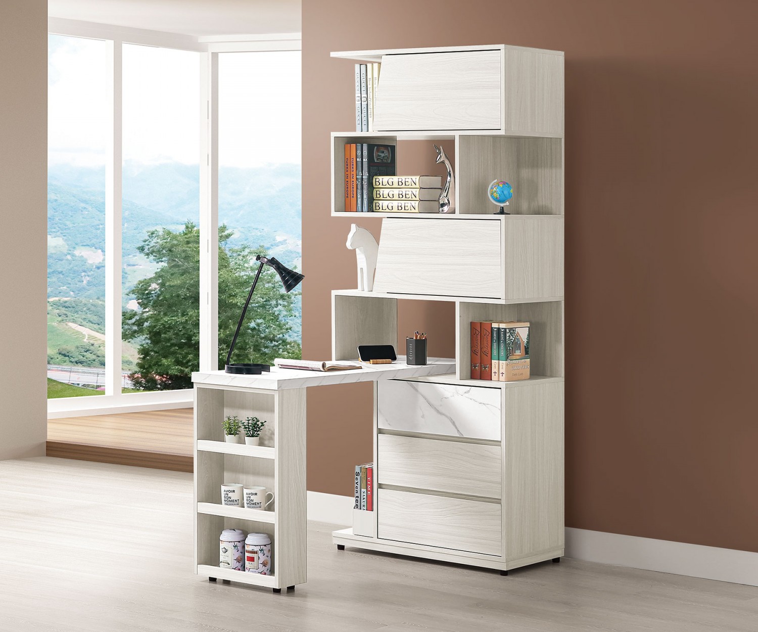 JC-710-3 蘿拉4尺組合書桌櫃(抽左.全組)