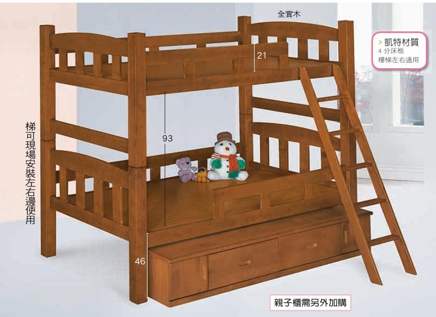CL-664-32 凱特柚木色3.5尺雙層床 (含親子櫃)(四分床板) (不含其他產品)