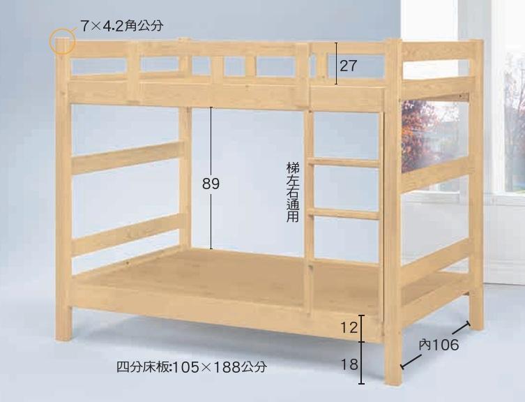 CL-669-2 白木3尺方柱雙層床(B桿204)(單護欄.兩吋腳)