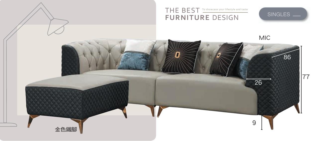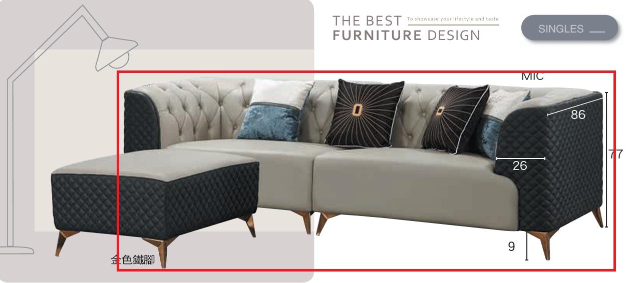 CL-780-2 L型沙發(563-1) (不含其他產品)尺寸:寬210*深90*高90cm腳椅:寬80*深80*高42cm