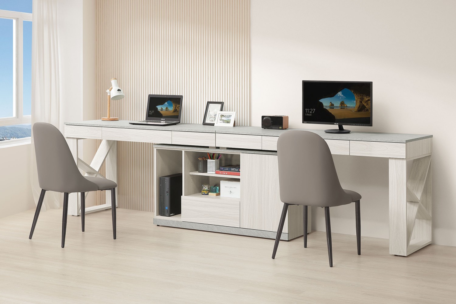 SH-A555-01 萊米克9尺雙人書桌組
