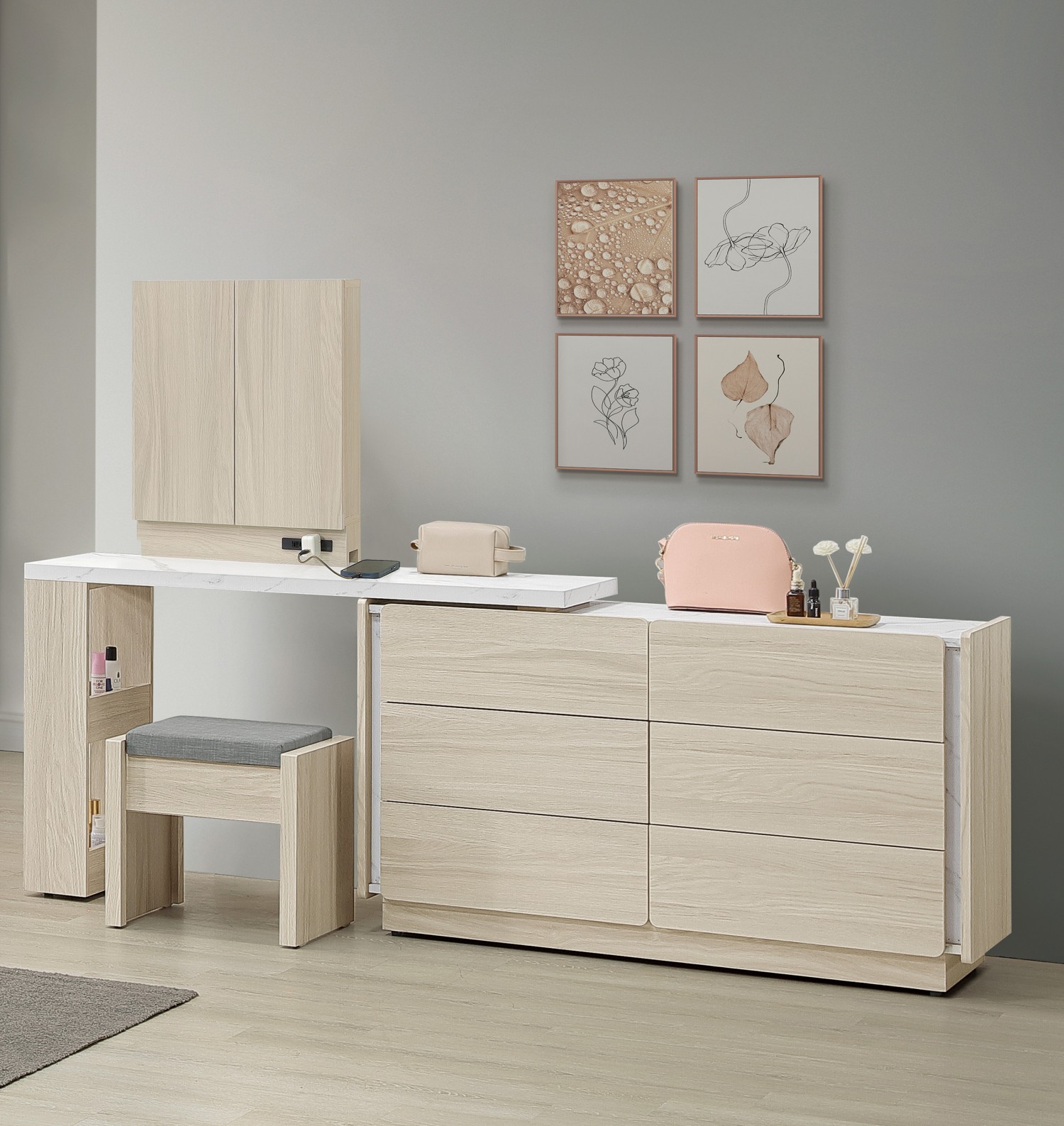 SH-A56-02 索菲亞4尺岩板功能伸縮鏡台組