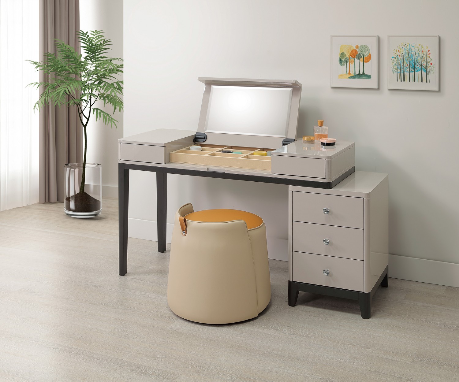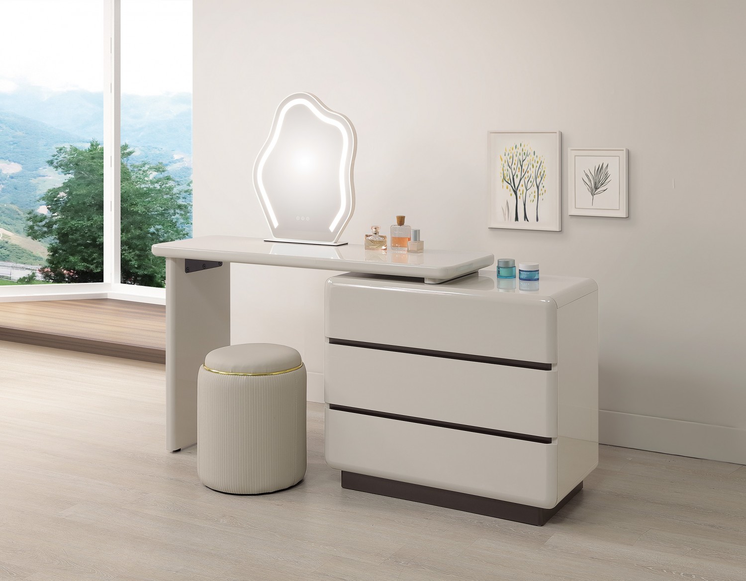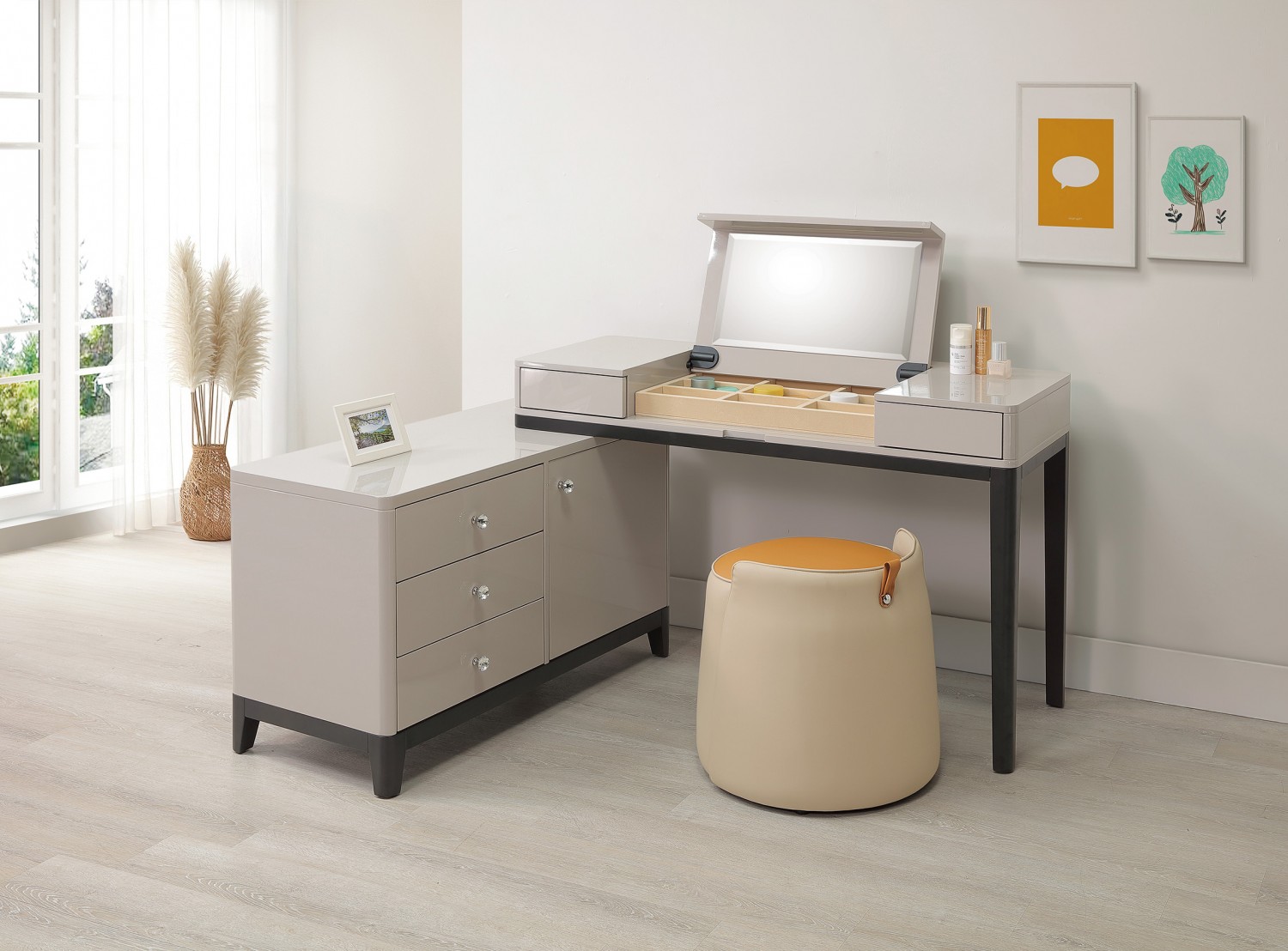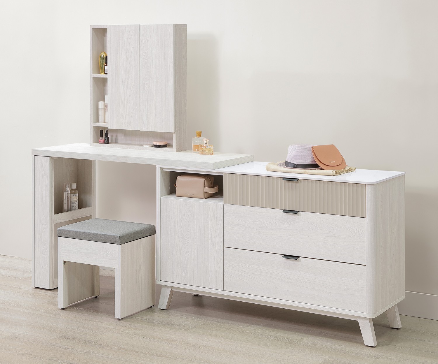 SH-A69-09 泰勒4.4尺功能伸縮方鏡台(含椅)