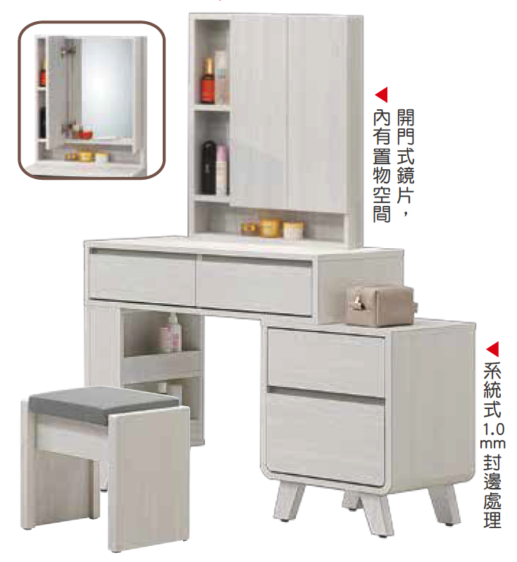 SH-A25-02 布麗2.7尺伸縮鏡台(含椅)