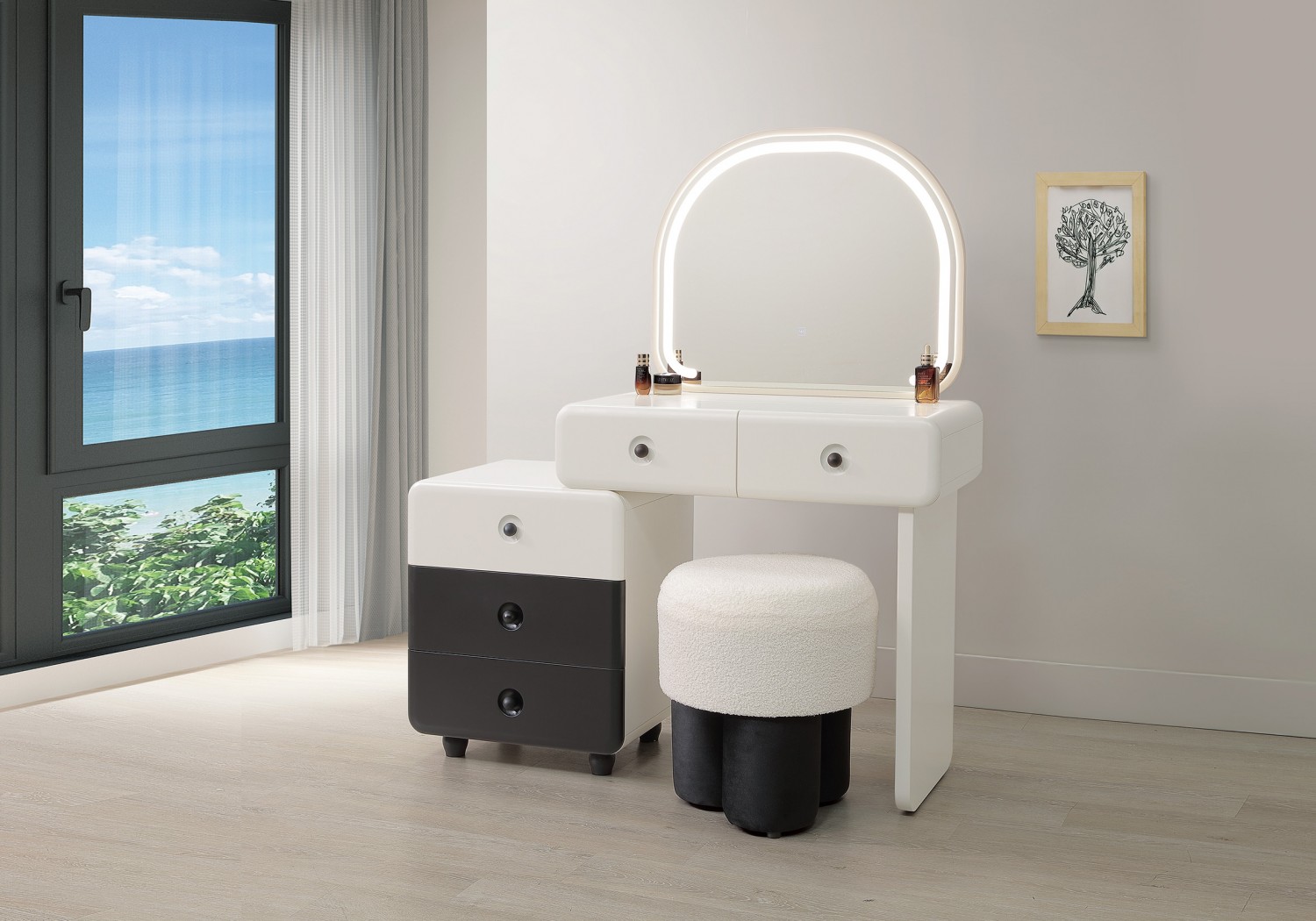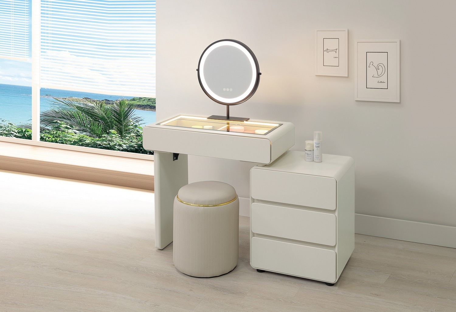 SH-A35-09 華格納2.7尺岩板伸縮鏡台(含椅,不含其他產品)